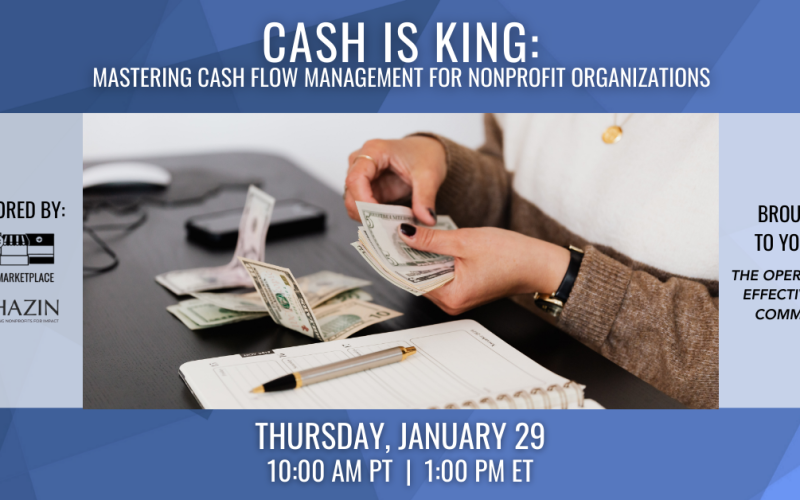 In this class, participants will delve into the principles, strategies, and best practices of cash flow management specifically tailored to the unique needs and challenges of nonprofit organizations. Key topics include: understanding cash flow dynamics, the importance of budgeting and forecasting in cash flow management, and how to establish effective monitoring and reporting mechanisms to track cash flow.