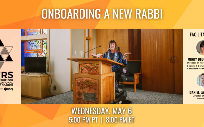 The next steps are now focused on onboarding, which includes a successful transition and change management process. Daniel Langenthal, USCJ Director of Leadership Development, and Mindy Block Gordon, USCJ Director of Professional Clergy Search & Services, will discuss shifting the focus from the rabbinic search process to a transition process. We will talk about the practical steps that start with creating a transition committee that focuses on welcoming and onboarding the new rabbi and we will discuss how leadership can support your community with feelings that arise in this time of great change.