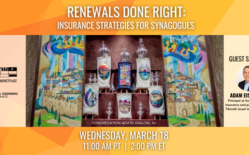 Please join Adam Eisenberg, a principal at Sokol Eisenberg Insurance and past president of Tifereth Israel in Columbus, Ohio. Having also served as interim Executive Director, Adam brings first-hand insight into synagogue operational and insurance needs.