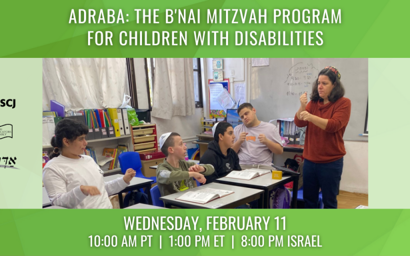 The Jewish Educators Assembly and the Israel Masorti Movement are pleased to partner and share The B'nai Mitzvah Program for Children with Disabilities (Adraba) of the Masorti Movement. All USCJ and Masorti educators are invited to this unique learning opportunity to learn from each other about how we serve the needs of all of our students.