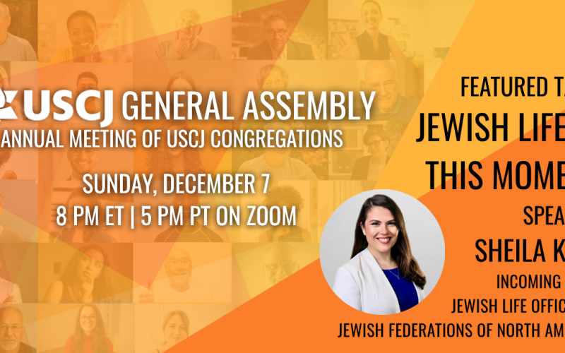 Join us for the General Assembly, USCJ’s annual meeting exclusively for leaders of member congregations, on Sunday, December 7 at 8 pm ET (5 pm PT) on Zoom.