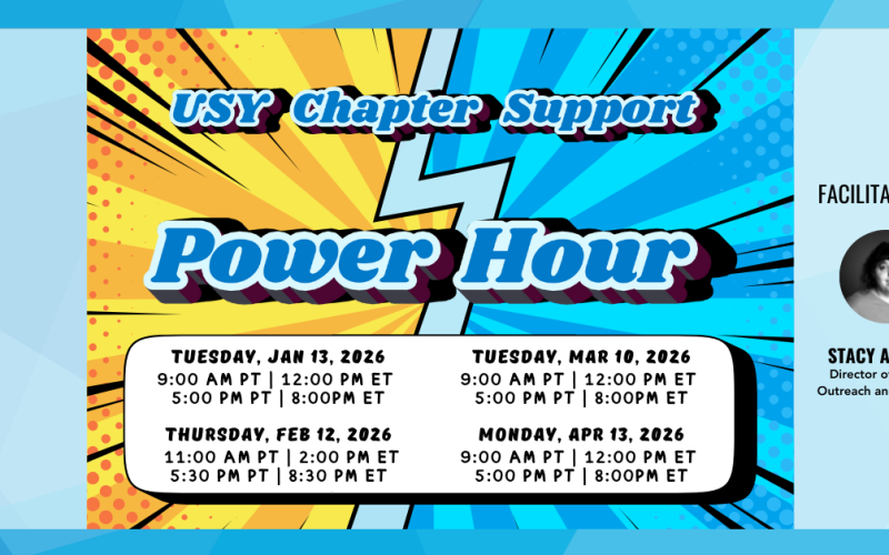 The USY Chapter Support Power Hours are engaging standalone sessions designed to provide chapter advisors, chapter directors, and youth professionals with the support and tools needed to strengthen their chapters. These sessions create opportunities to connect with fellow youth engagement leaders, share innovative programming ideas, collaboratively problem-solve common challenges, and celebrate successes together. By participating in these power hours, you'll tap into collective wisdom and practical strategies that will help you create lasting positive impacts on young lives while reigniting your passion for youth leadership.