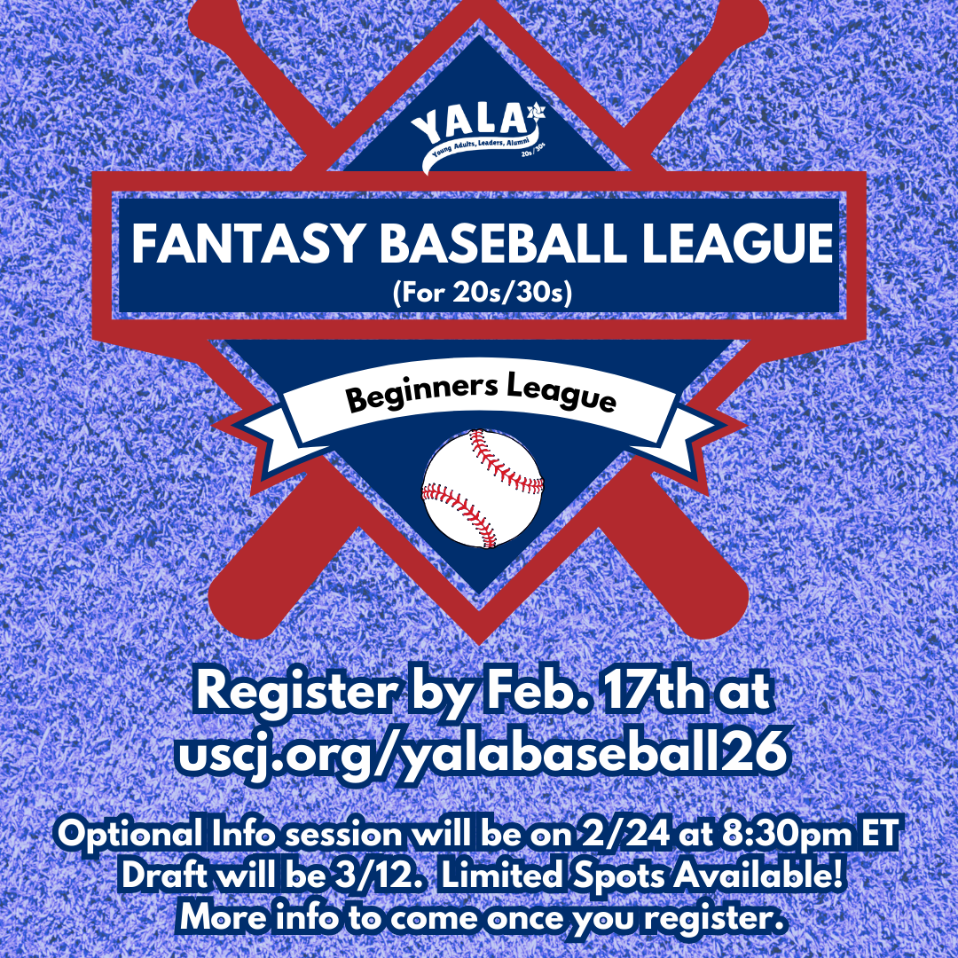 Join the 2026 YALA Fantasy Baseball League. To be part of the action, REGISTER HERE by 2/17.