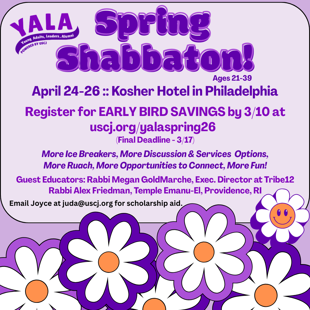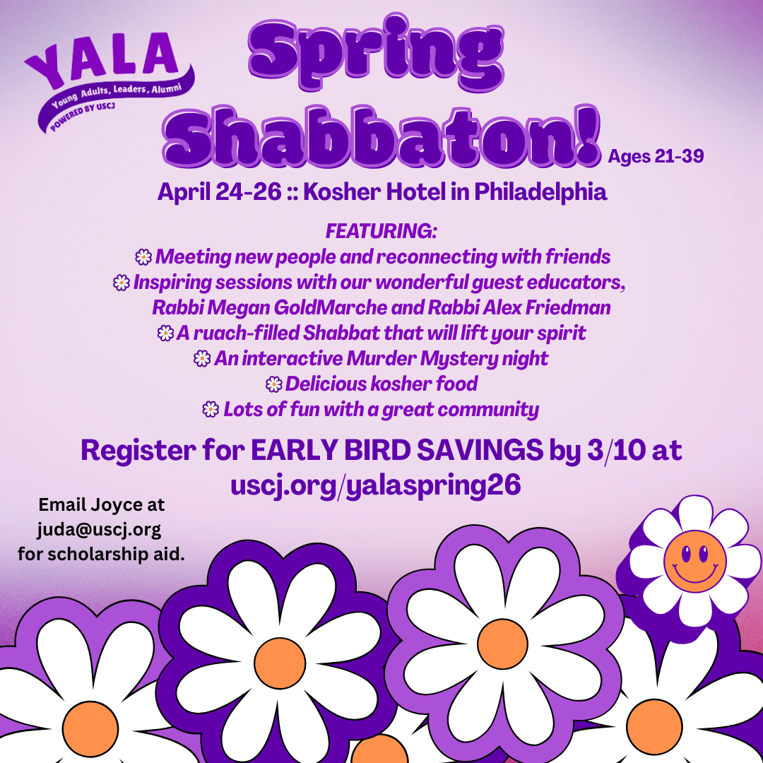 SPRING into action and join YALA for an incredible Spring Shabbaton 2026! April 24-26, 2026 at an amazing kosher hotel in Philly!